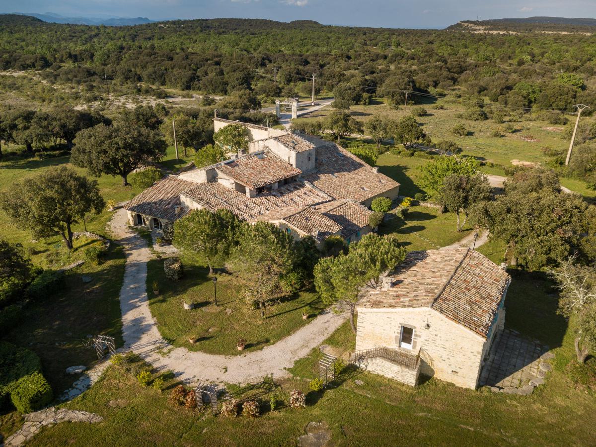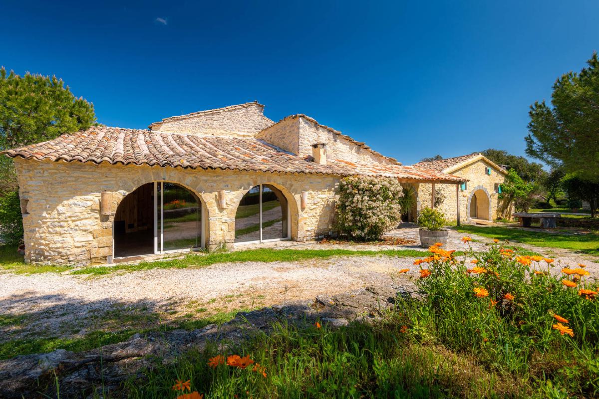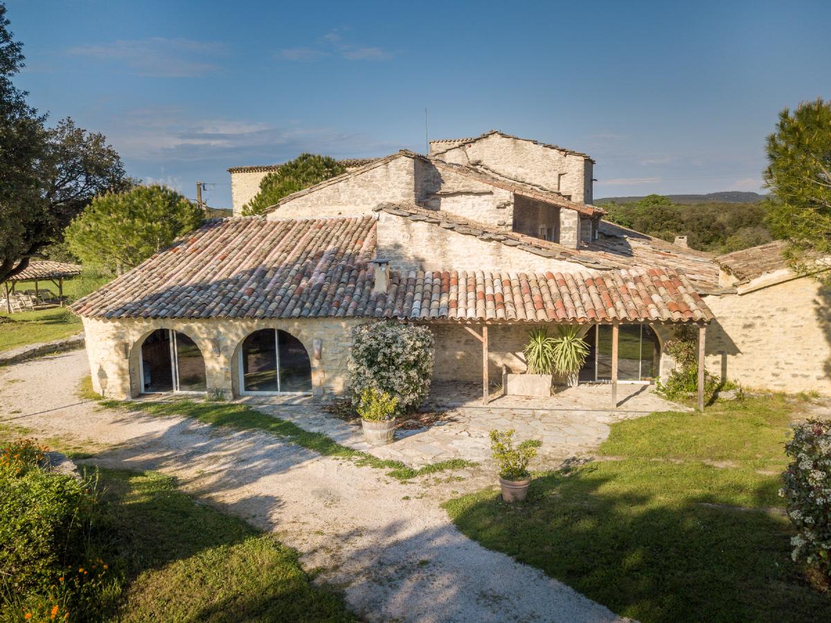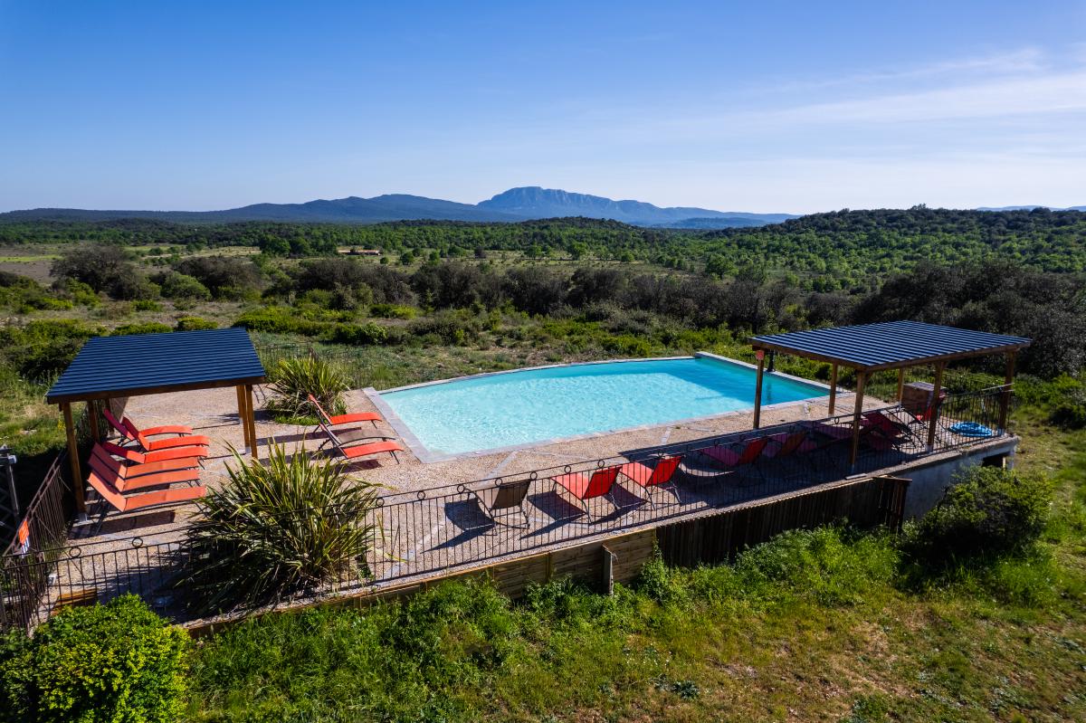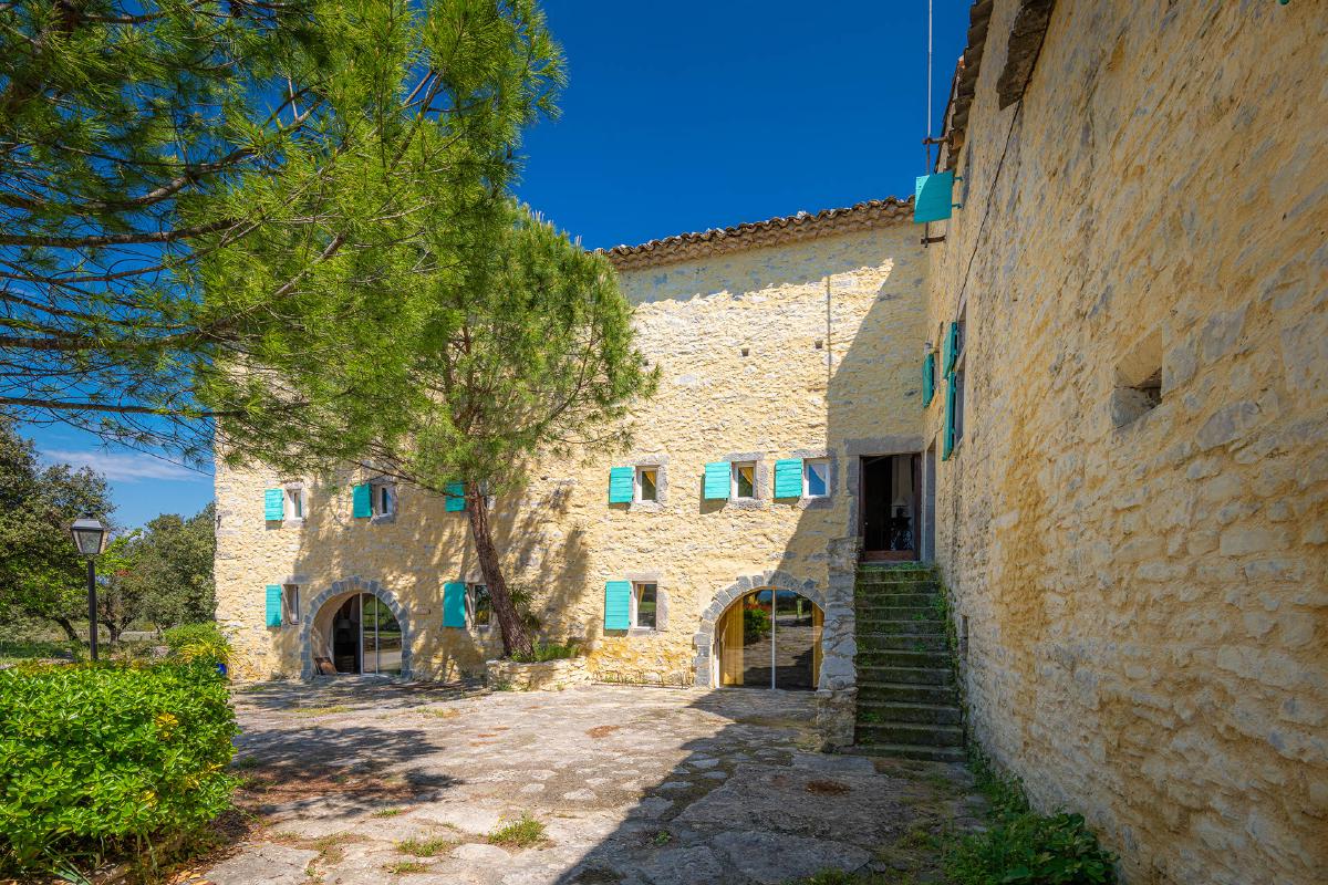 Facing the Pic Saint-Loup and its famous vineyards, the estate offers a 360-degree view overlooking the garrigue.