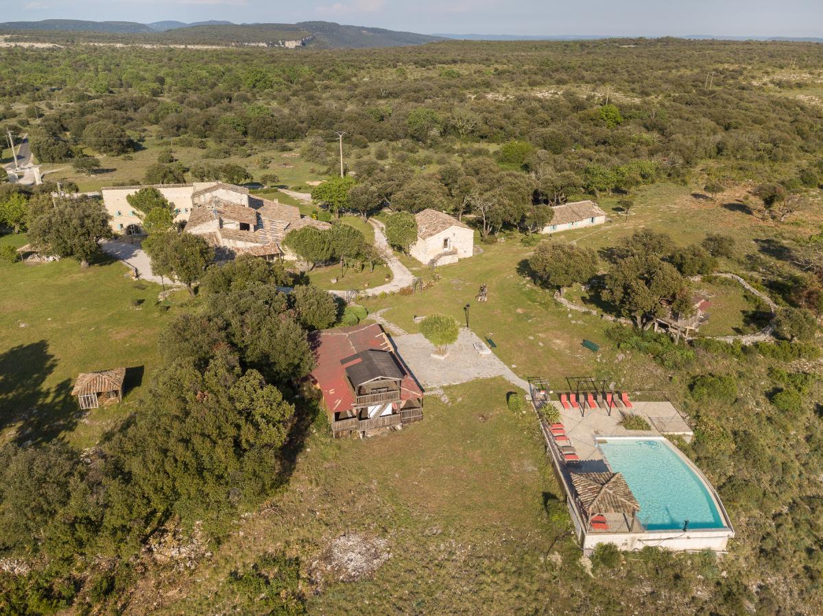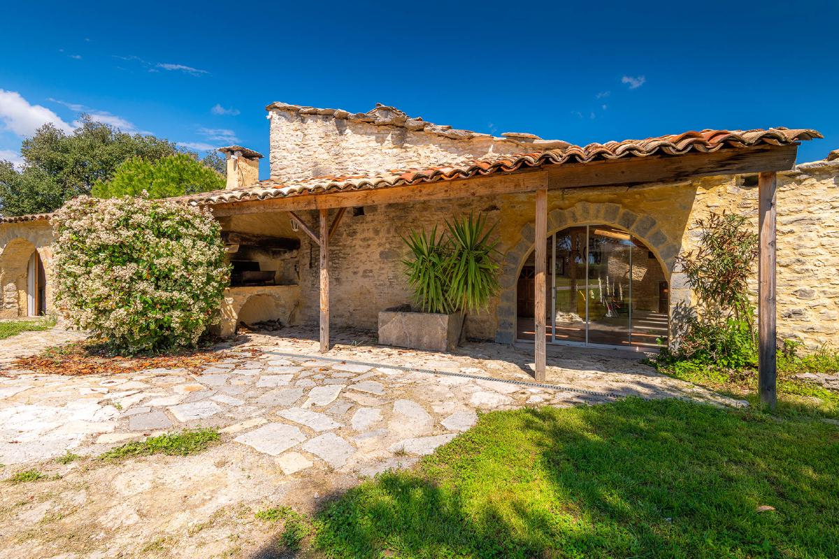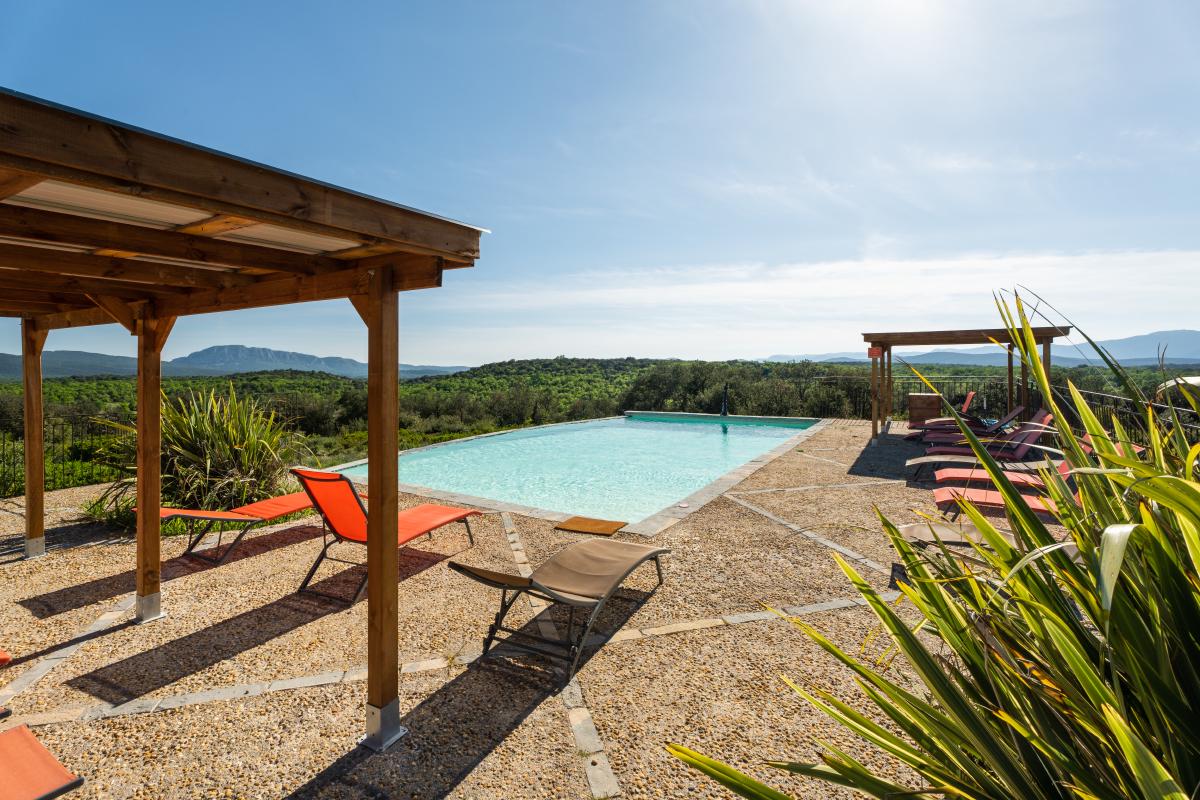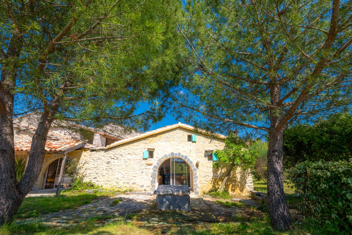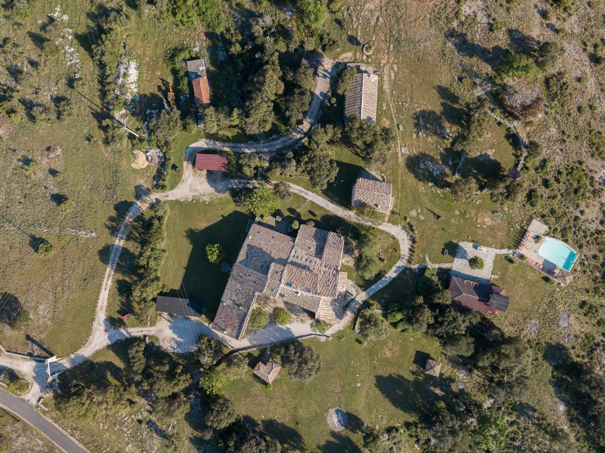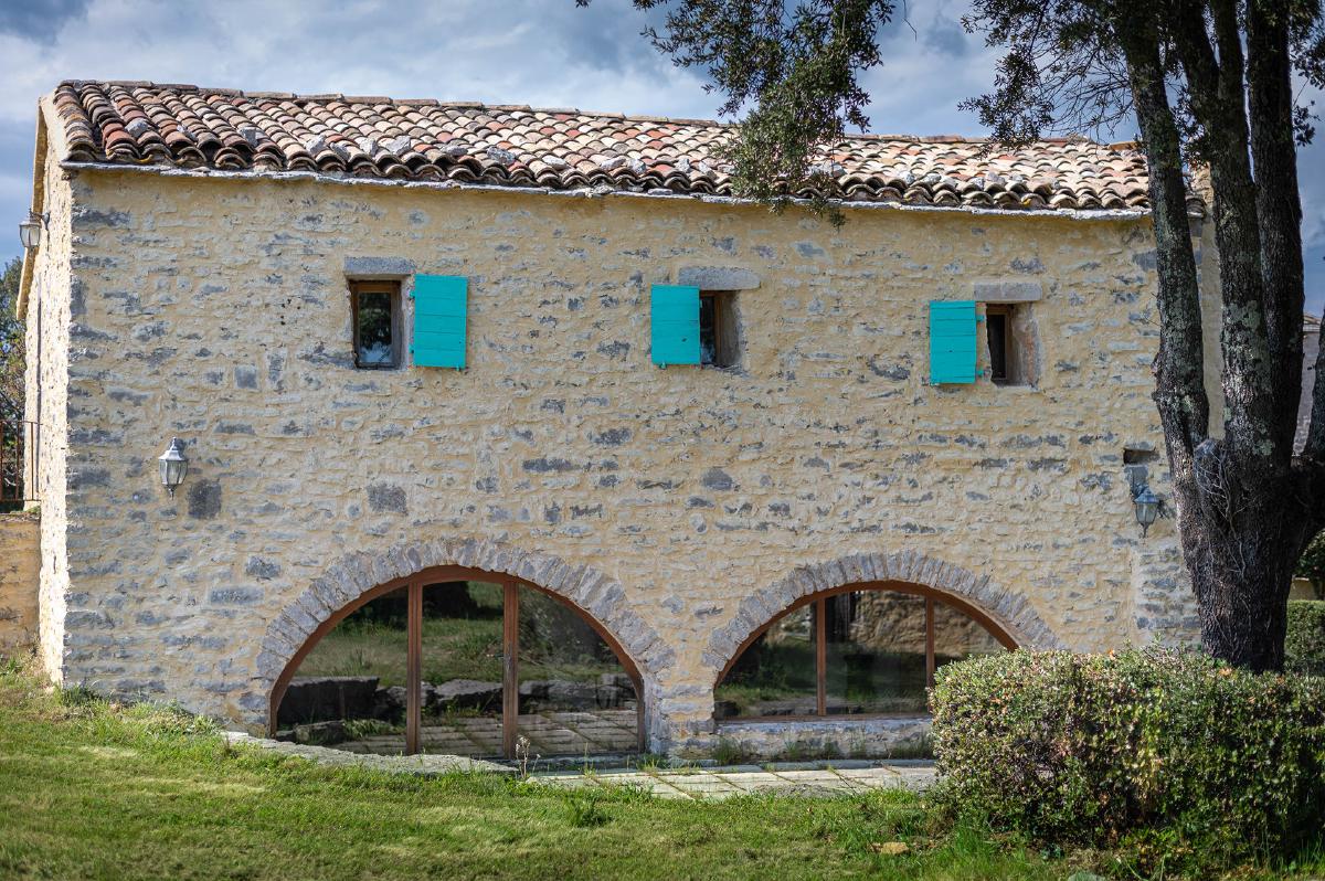 Facing the Pic Saint-Loup and its famous vineyards, the estate offers a 360-degree view overlooking the garrigue.